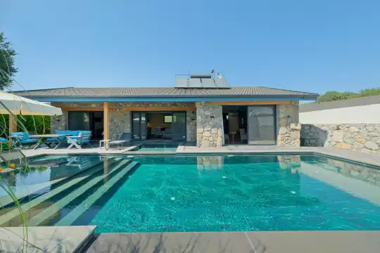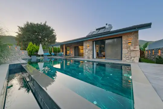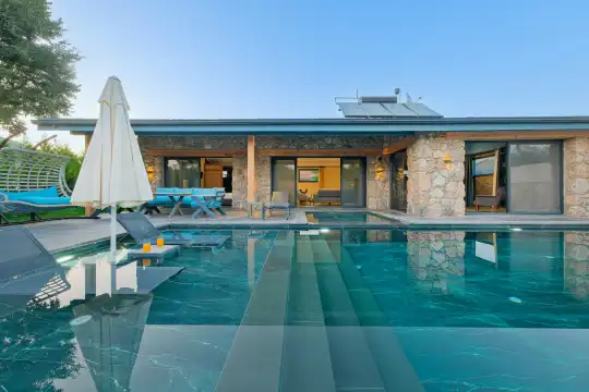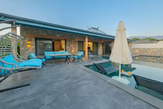 Modern tasarımlı salon ve tam donanımlı Amerikan mutfak, tatiliniz boyunca ev konforu sunar. Özel bahçesinde korunaklı yüzme havuzu, şezlonglar ve mangal alanı bulunur. Tarihi Kayaköy evlerine ve Fethiye merkezine yakın konumu sayesinde hem doğanın keyfini çıkarabilir hem de çevredeki aktivitelerle tatilinizi renklendirebilirsiniz.