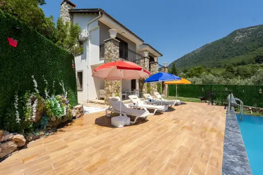 Fethiye'nin doğal güzellikleriyle öne çıkan Yeşilüzümlü (Kızılbel) bölgesinde yer alan bu özel havuzlu villamız, Villacı Kuş kalitesiyle hizmetinizde. 3 yatak odası ve 6 kişilik konaklama kapasitesiyle, huzurlu ve sakin bir tatil arayışında olan misafirlerimiz için ideal bir seçenektir. Tamamen korunaklı havuz alanı sayesinde, özellikle balayı çiftleri ve çekirdek aileler için mahremiyet ön planda tutulmuştur.