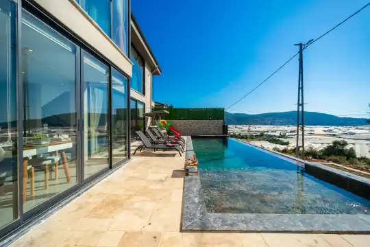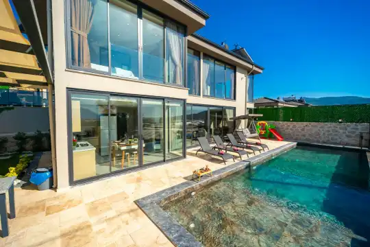 Korunaklı havuzu sayesinde dışarıdan görünme endişesi yaşamadan dilediğiniz gibi yüzebilir, bahçede güneşlenebilir, barbekü keyfi yapabilirsiniz. Ayrıca her iki yatak odasında yer alan jakuzi detayı, tatilinize ekstra bir konfor katar.