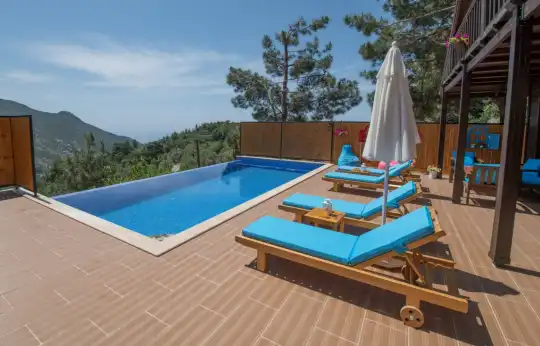 Villa Seyirtepe 2, Antalya’nın doğal güzellikleriyle öne çıkan Kalkan İslamlar Köyü’nde yer alan, 4 kişilik konaklama kapasitesine sahip özel havuzlu ve jakuzili bir tatil villasıdır. Ahşap mimarisiyle sıcacık bir atmosfer sunan villamız, hem balayı çiftleri hem de çekirdek aileler için huzurlu bir konaklama imkânı sunar.