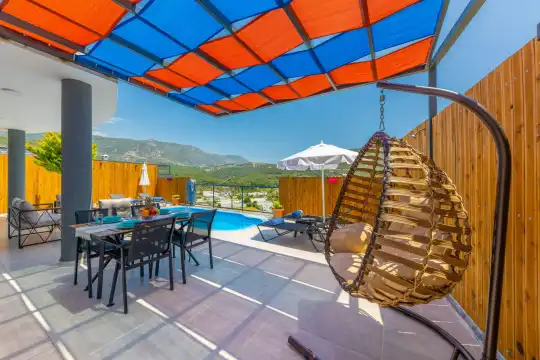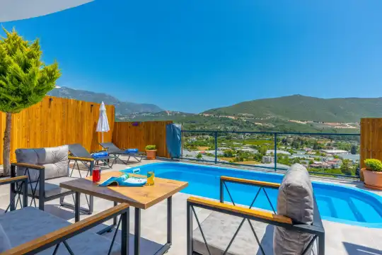 Doğayla iç içe, huzur dolu bir tatil arayanlar için ideal bir seçenek: Villa Tuana Yeşilköy. Kalkan’ın sakin ve yeşilliklerle çevrili Yeşilköy bölgesinde yer alan bu özel villa, 2 yatak odasıyla 4 kişilik konaklama kapasitesine sahiptir. Tam korunaklı havuz alanı, çocuklar için mini oyun alanı ve jakuzi gibi ayrıcalıklarla donatılmıştır.