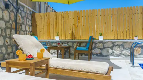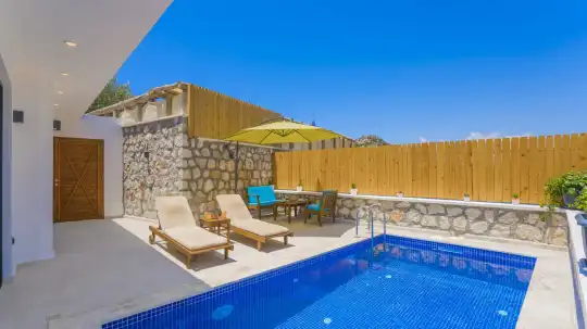 Villamızın havuz ve havuz terası %100 korunaklı olup dışarıdan kesinlikle görünmemektedir. Gözlerden uzak, doğa içinde huzurlu bir tatil geçirmek isteyen çiftler için idealdir.