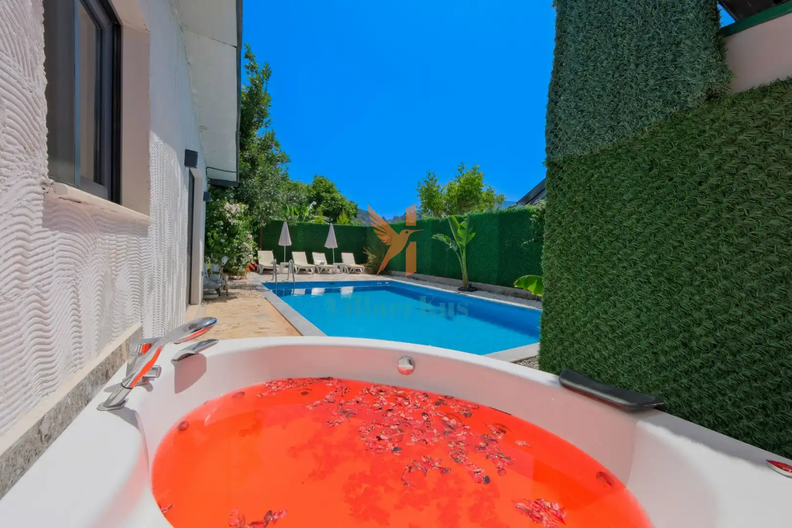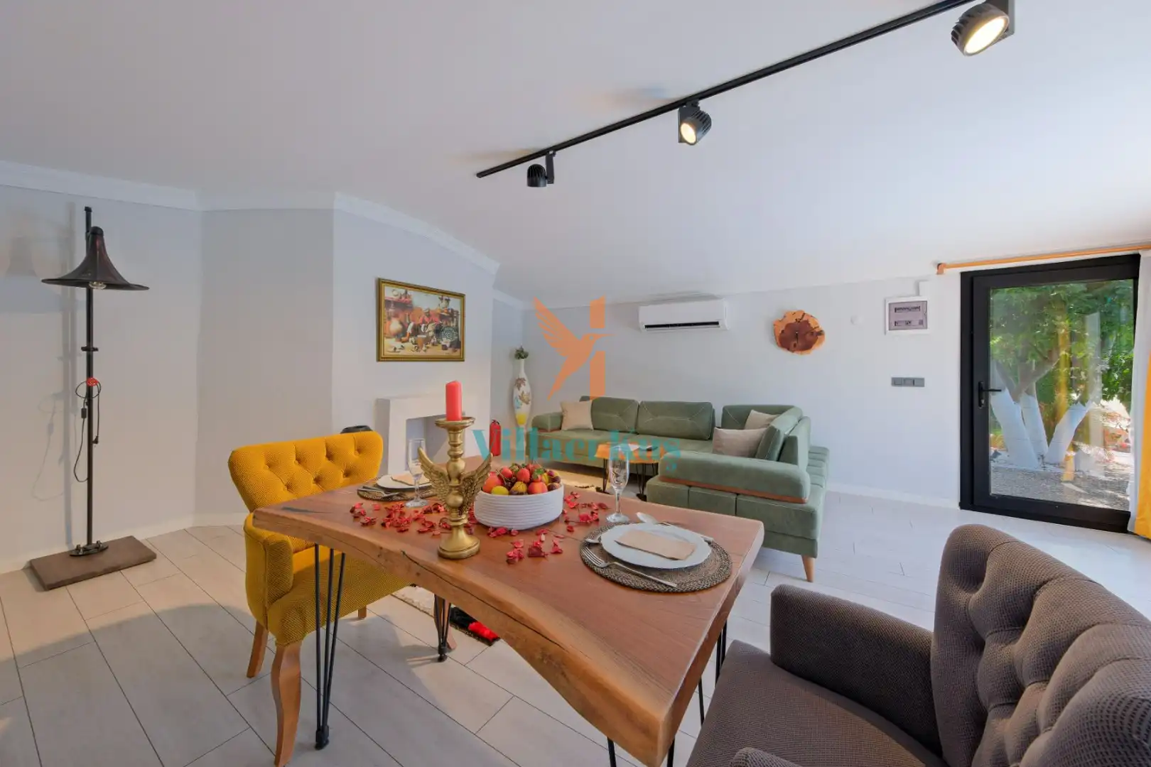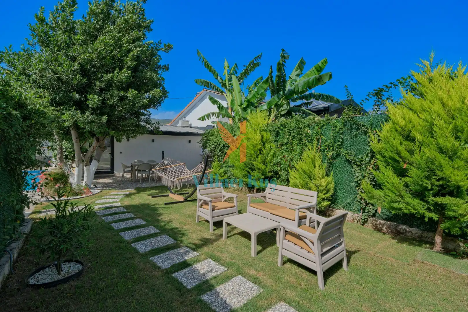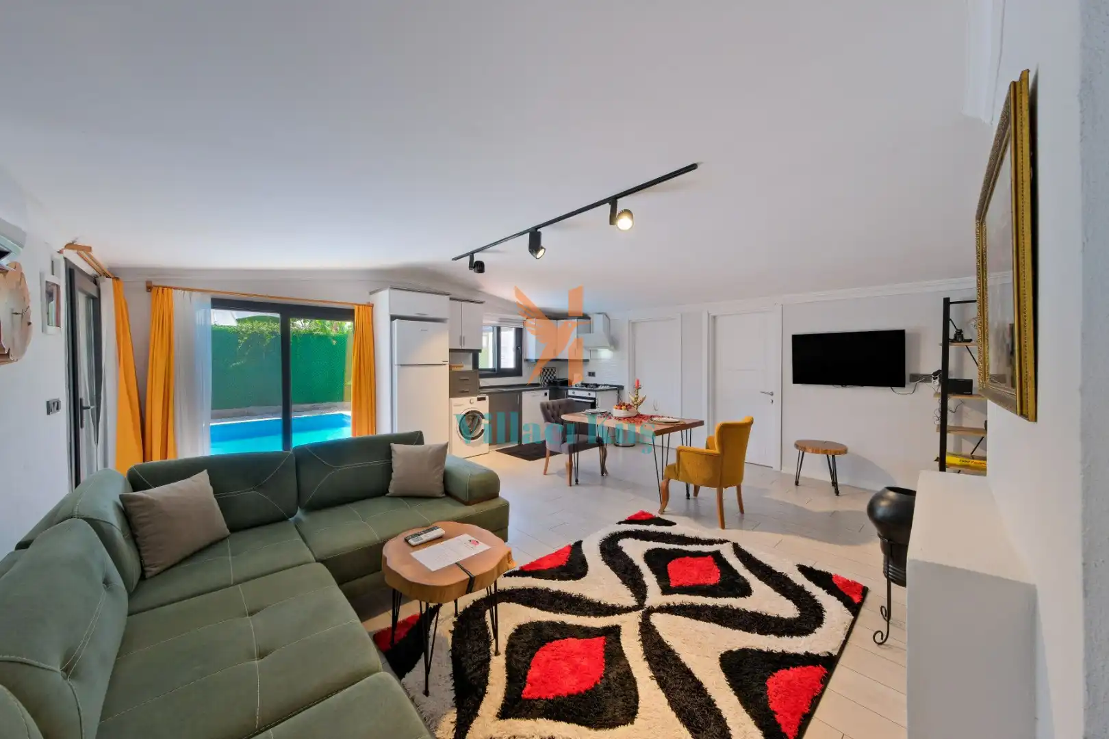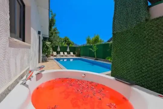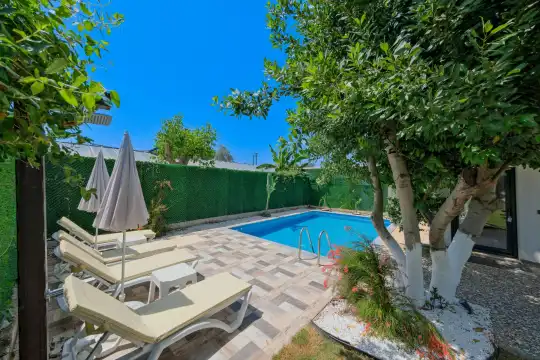 Modern tasarımlı salonu ve tam donanımlı Amerikan mutfağı sayesinde tatiliniz boyunca ev konforunu yaşarken, geniş bahçesinde yer alan korunaklı yüzme havuzu, jakuzi, salıncak, şezlonglar ve mangal alanı ile keyifli vakit geçirebilirsiniz.