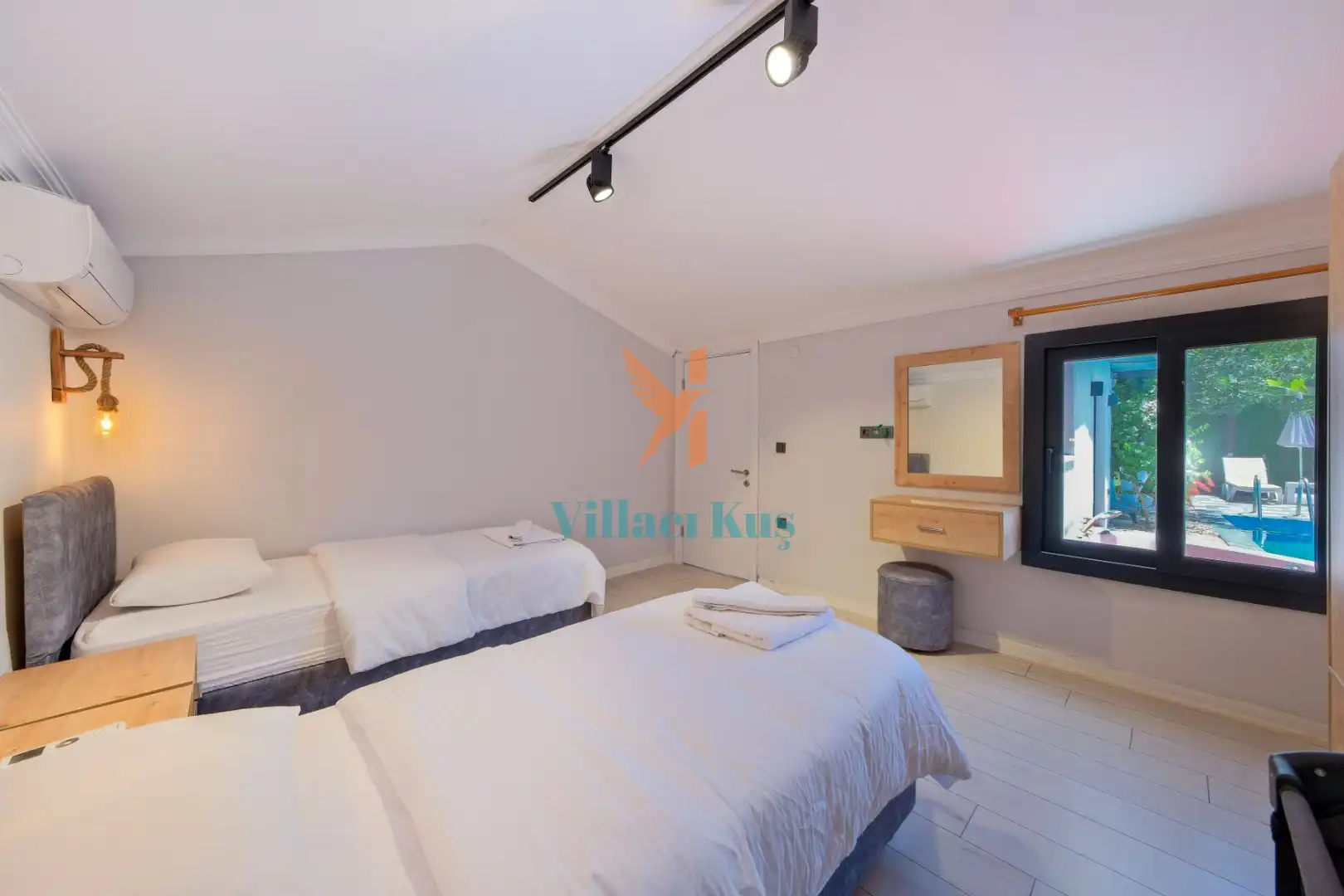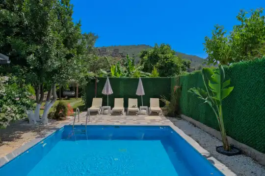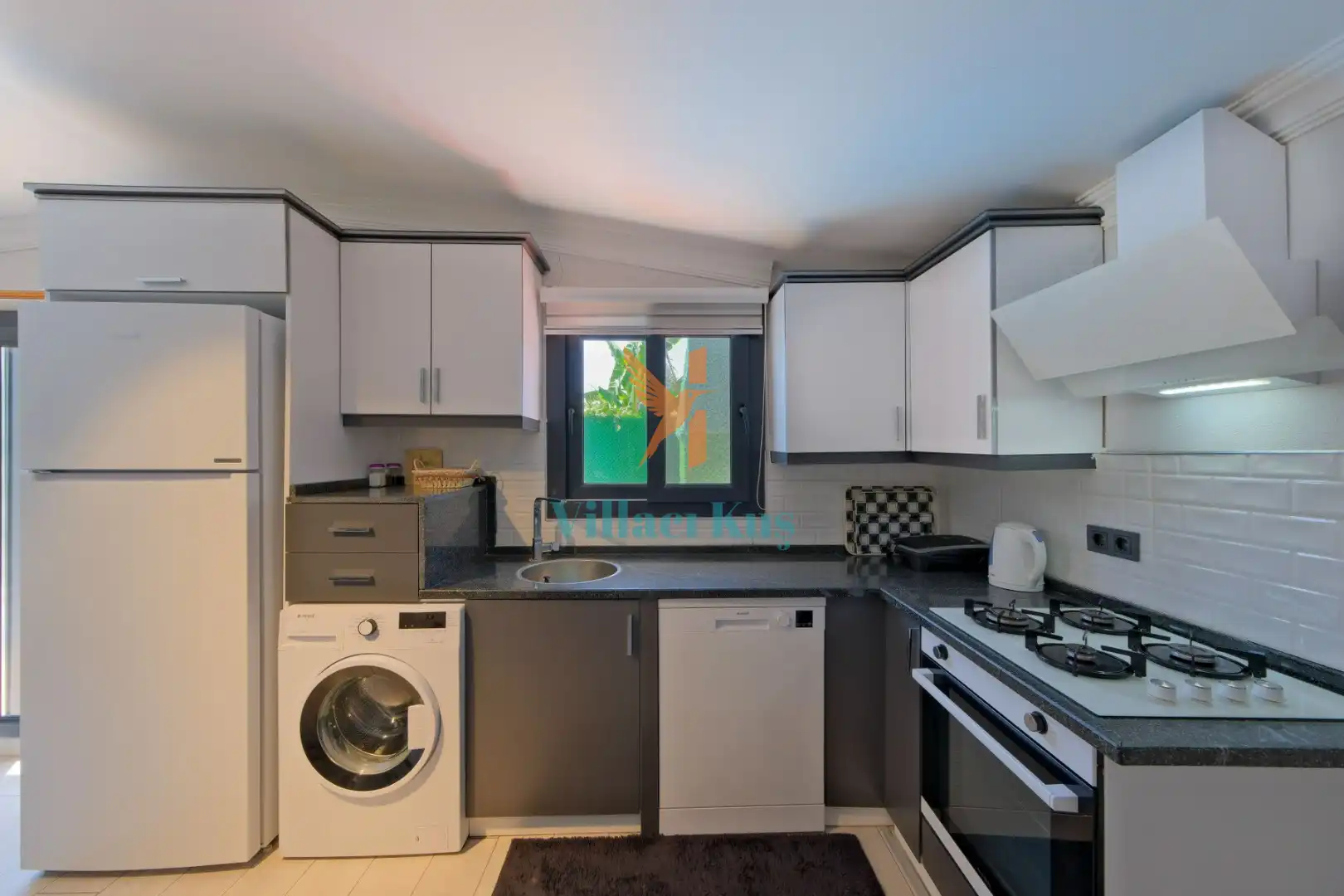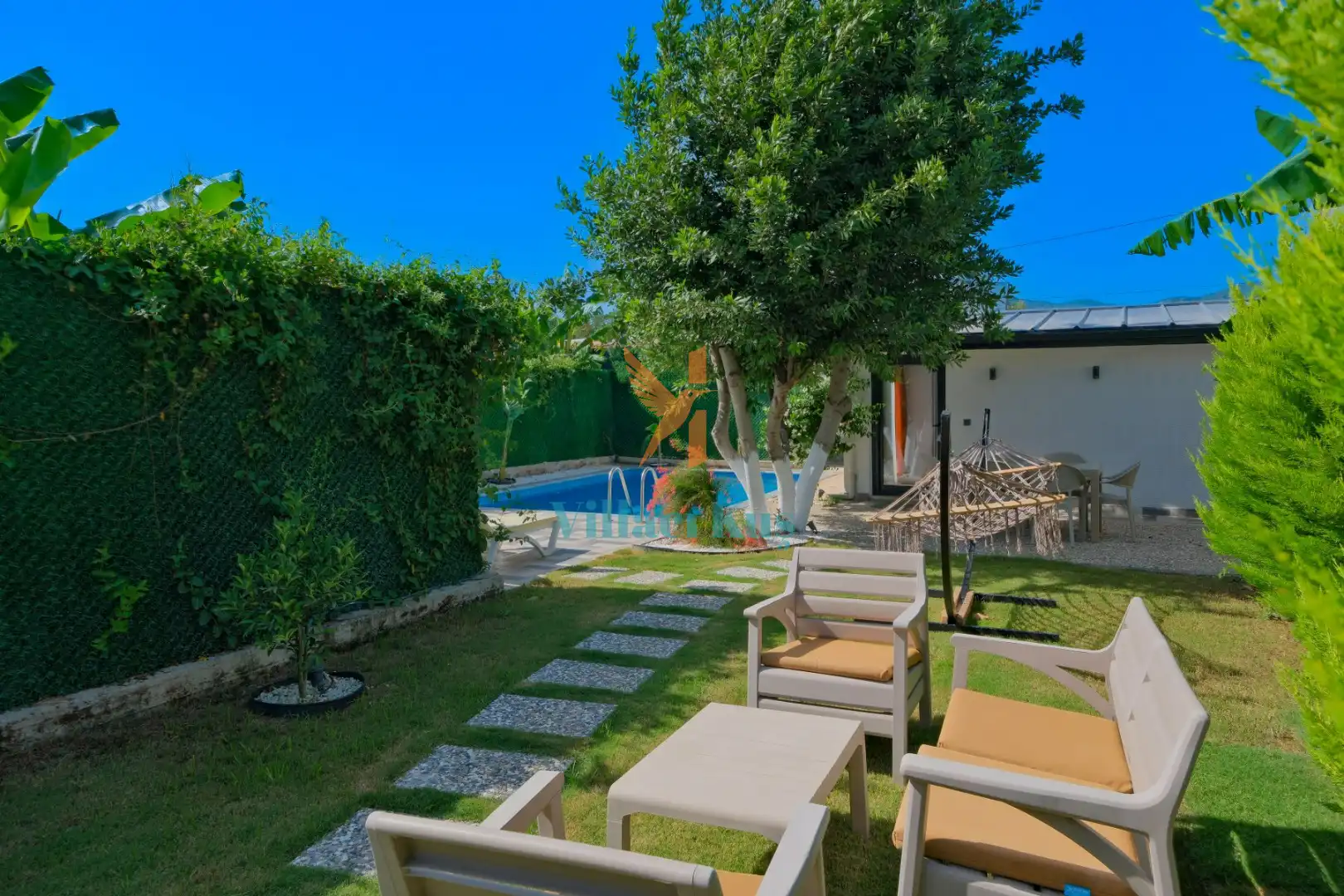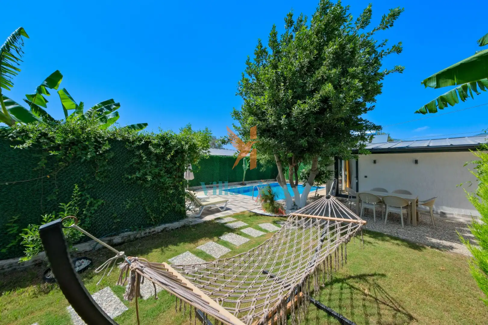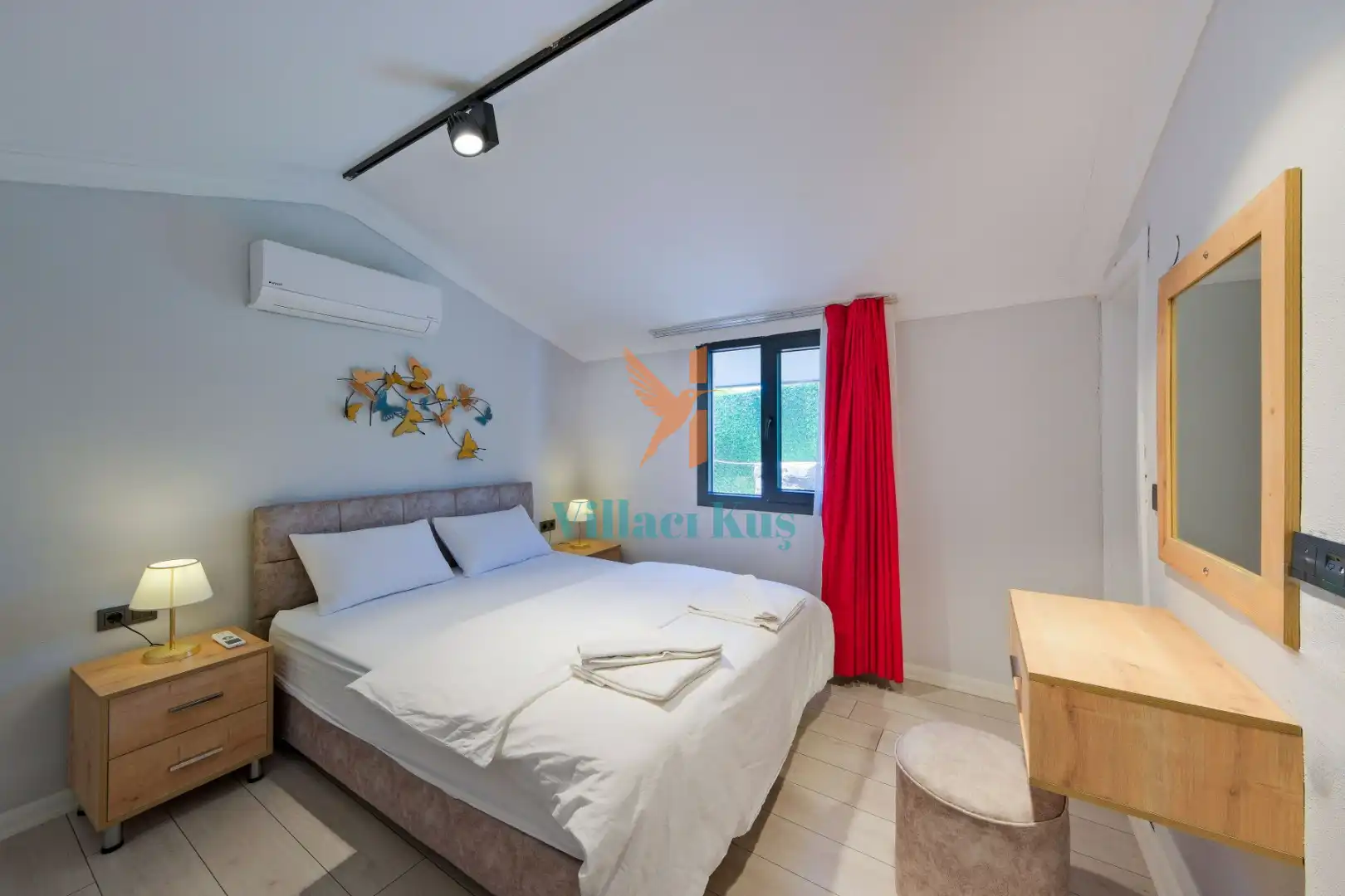 Modern tasarımlı salonu ve tam donanımlı Amerikan mutfağı sayesinde tatiliniz boyunca ev konforunu yaşarken, geniş bahçesinde yer alan korunaklı yüzme havuzu, jakuzi, salıncak, şezlonglar ve mangal alanı ile keyifli vakit geçirebilirsiniz.